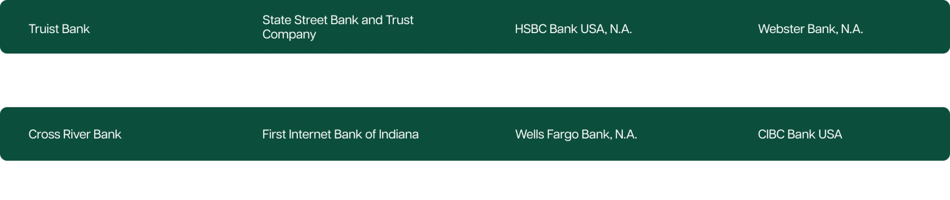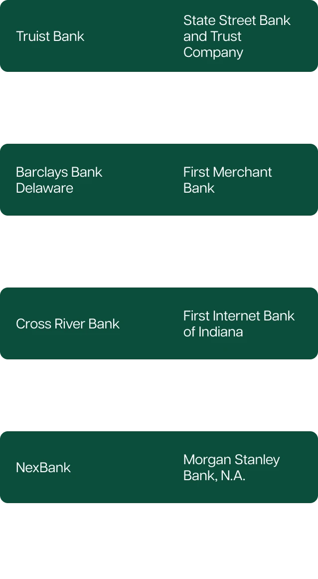 Program bank list last updated as of September 16, 2024. Up to $250,000 of coverage for each insurable capacity—e.g., individual or joint—at up to eight Program Banks. Electing to exclude one or