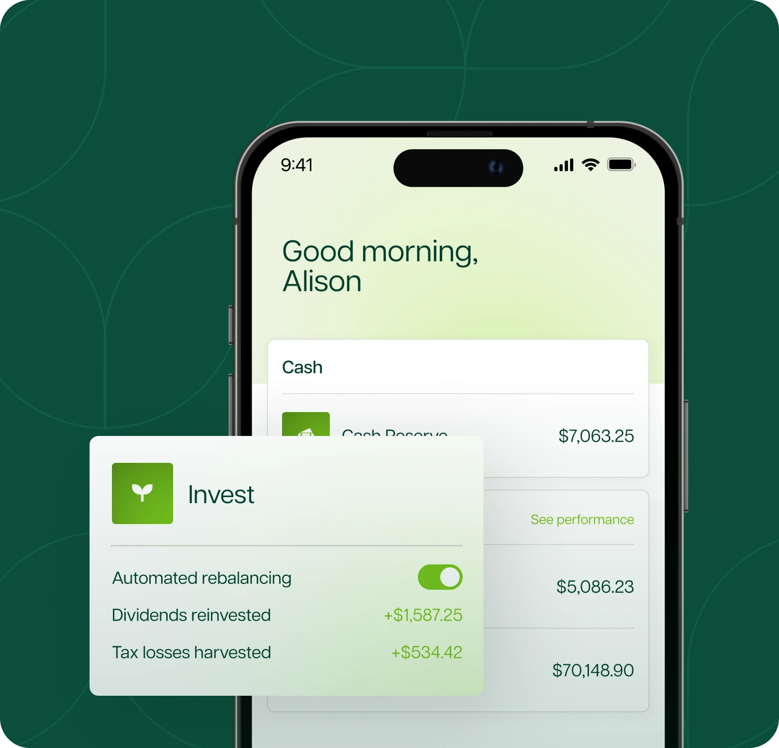 Get a diversified portfolio built around your financial goals. We automatically manage and rebalance your investments to support long-term consistency — so you can focus on living your life.